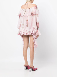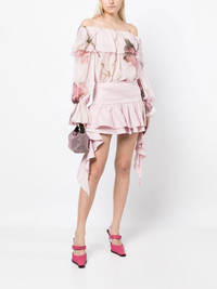 Bardot-neckline ruffled blouse rose pink silk floral print ruffled detailing Bardot neckline halterneck tie fastening long sleeves ruffle cuffs lettuce hem Made in Italy Composition Silk 100% SIZE & FIT Model measurements Height 5 ft 9 in(1.76 m) Bust/Chest 31.1 in(79 cm) Hips 35.03 in(89 cm) Waist 24.4 in(62 cm) Washing instructions Dry Clean Only