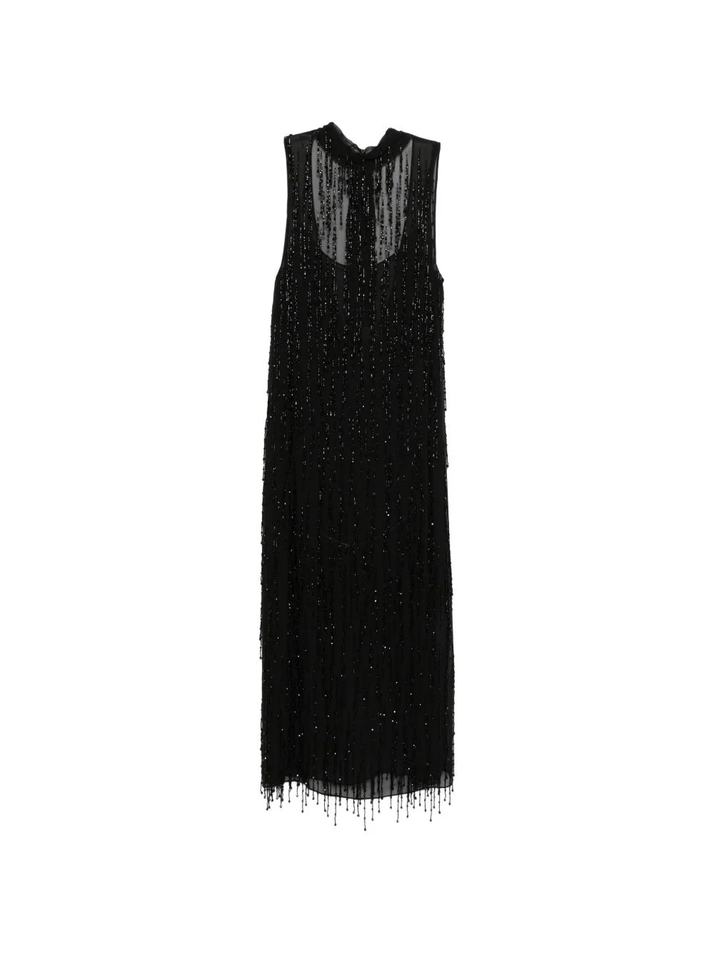 beaded high-neck dress Highlights - Black - Beaded embellishment - High neck - Sleeveless - Fringed hem Made in Italy Composition Silk 100% Washing instructions Read Manufacturer Guidelines