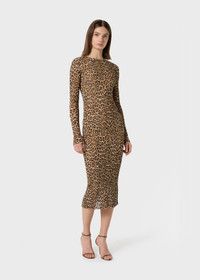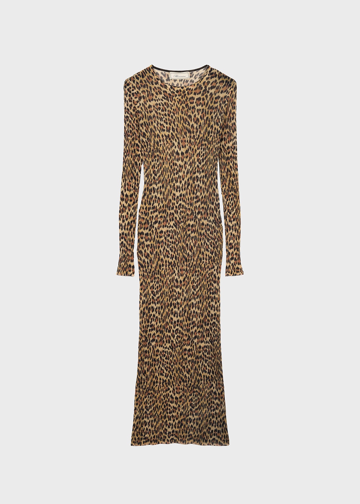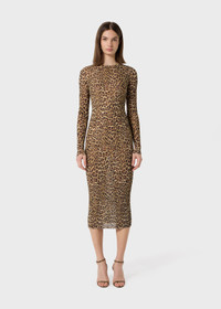 CREW NECK MIDI DRESS IN PRINTED LEOPARD VISCOSE RIBBED KNIT. BODYCON LINE. COMPOSITION: 82% CO 18% PA - VISCOSE RIB KNIT - LEOPARD PRINT - BODY BON LINE - LONG SLEEVES DETAILS COLORS: ANIMALIER