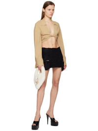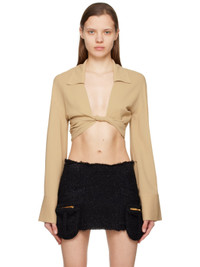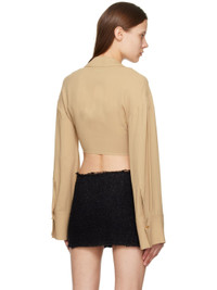 Semi-sheer stretch viscose crepe shirt. · Spread collar at plunging V-neck · Twisted detailing at front · Concealed zip closure at side seam · Single-button barrel cuffs · Partial crepe lining Supplier color: Lark 98% viscose, 2% elastane. Made in Italy 231901F109005