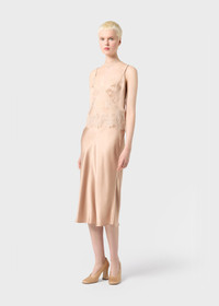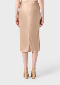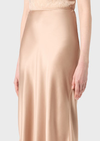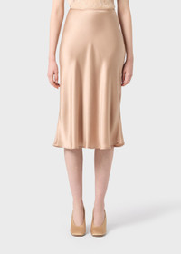 SOFT SILK SATIN MIDI SKIRT WITH FLARED HEM. COMPOSITION: 100%SE - SILK SATIN - SLIGHTLY FLARED STYLE - WAVY FRONT - ZIP CLOSURE AT SIDE - MIDI LENGTH - REGULAR FIT DETAILS COLORS: BEIGE