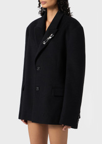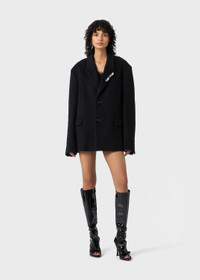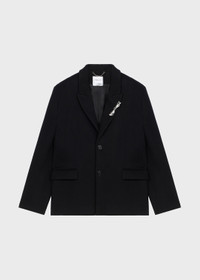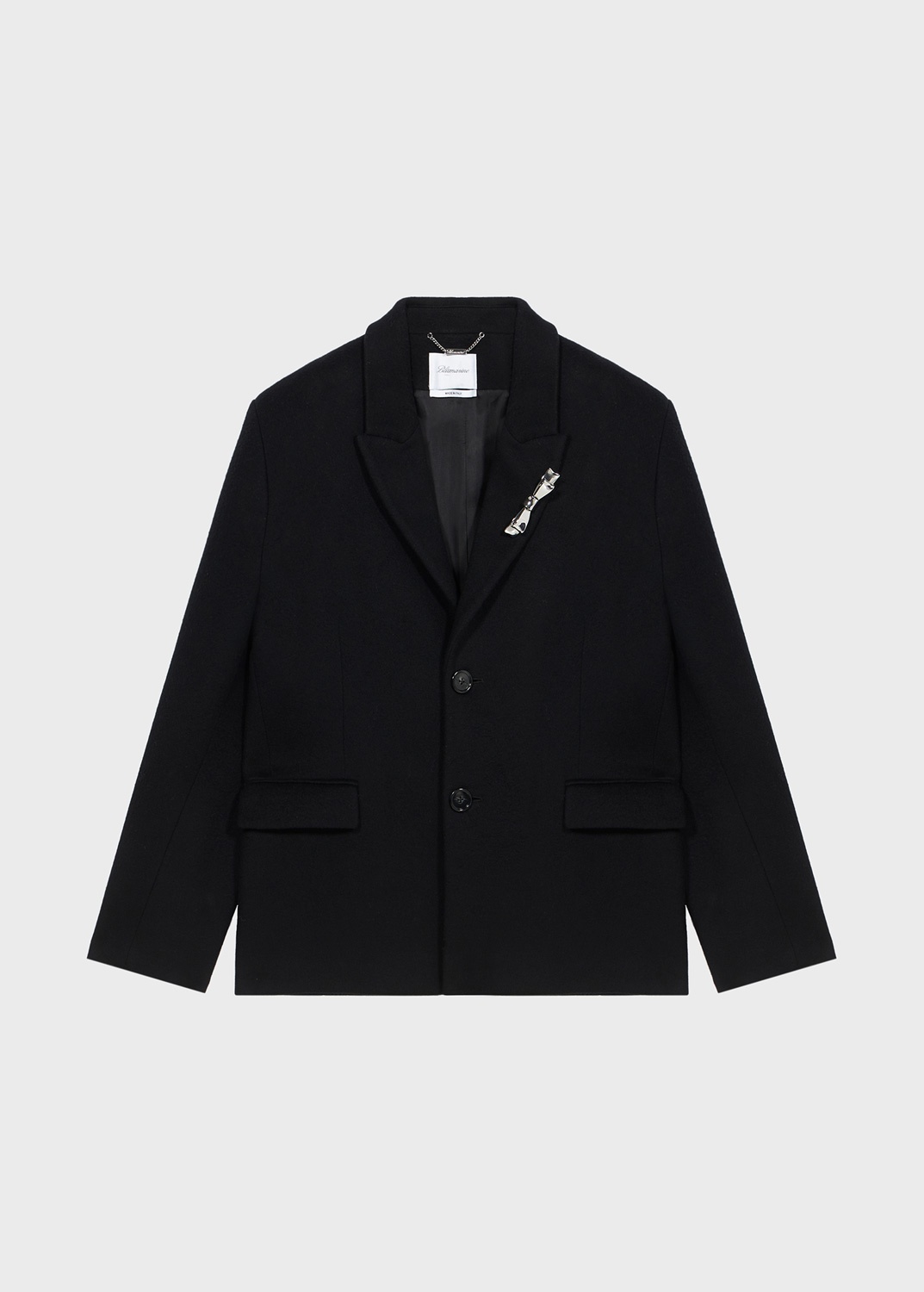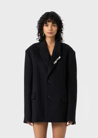 SINGLE-BREASTED JACKET IN WOOL-BLEND FABRIC WITH AN OVERSIZED FIT, PEAK LAPELS, JEWEL PIN, TWO-BUTTON CLOSURE, AND BUTTONED CUFFS. COMPOSITION: 40% WO 30% PA 30% VI - WOOL BLEND FELT - LAPELS - METAL BIJOUX PIN - SINGLE-BREASTED CLOSURE - TWO-BUTTON CLOSURE - FLAP POCKETS - BUTTONED CUFFS - FULLY LINED - OVERSIZED FIT DETAILS COLORS: BLACK