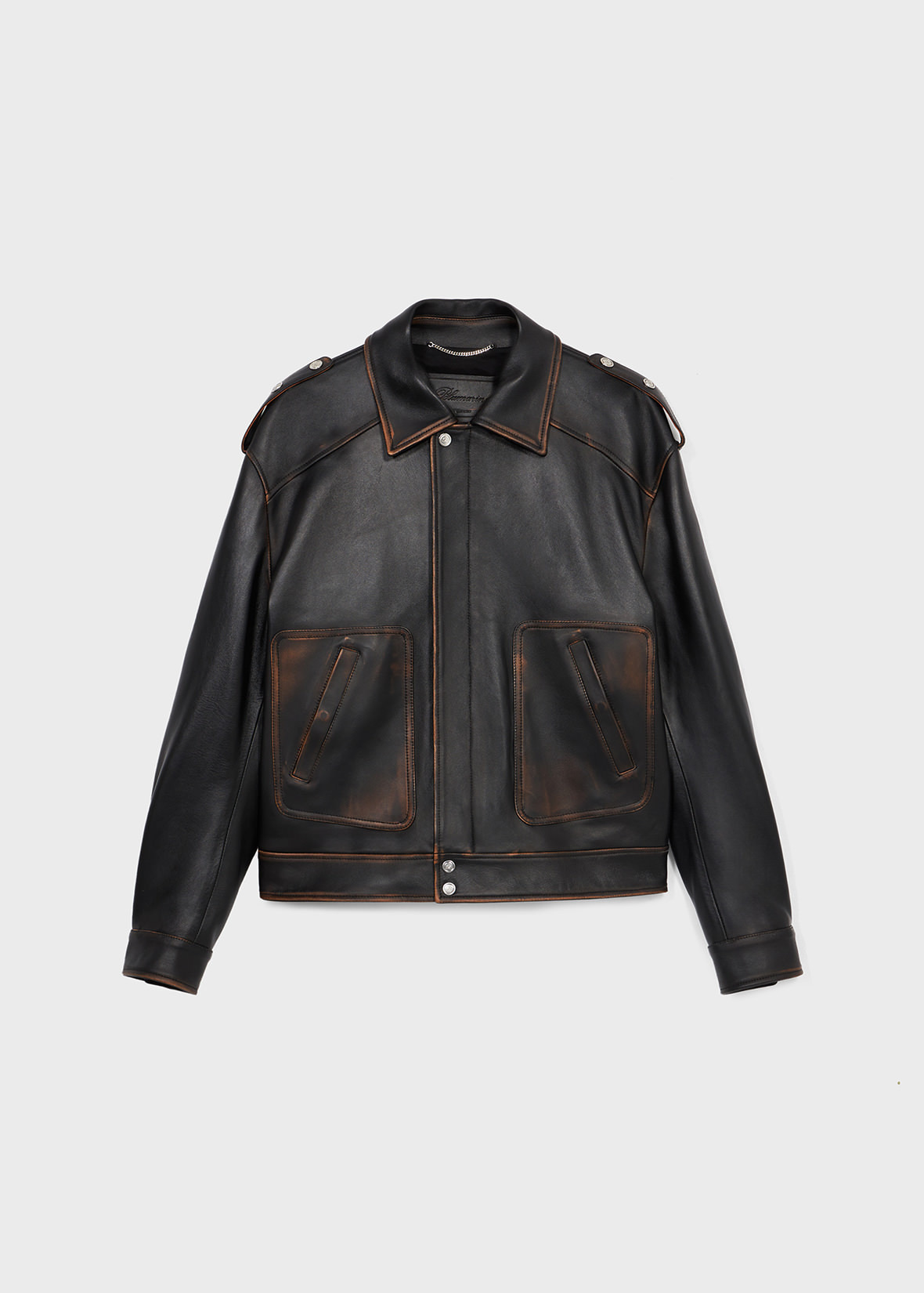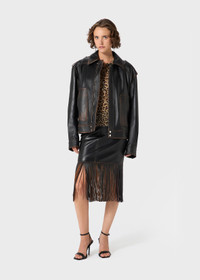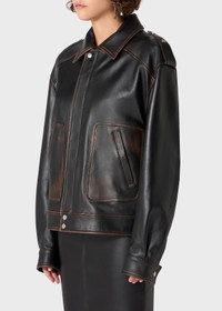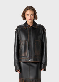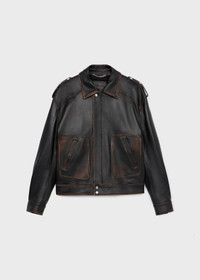 VINTAGE-EFFECT GENUINE LEATHER BIKER JACKET WITH TOGGLE FASTENERS AND PATCH POCKETS. COMPOSITION: 100% LEATHER - GENUINE LEATHER - AGED EFFECT - COLLAR - TOGGLE FASTENERS - FRONT PATCH POCKETS - LONG SLEEVES, BUTTONED CUFFS - SNAP BUTTONS AND ZIP CLOSURE WITH B MONOGRAM LOGO - COTTON LINING - LOOSE FIT DETAILS COLORS: BLACK