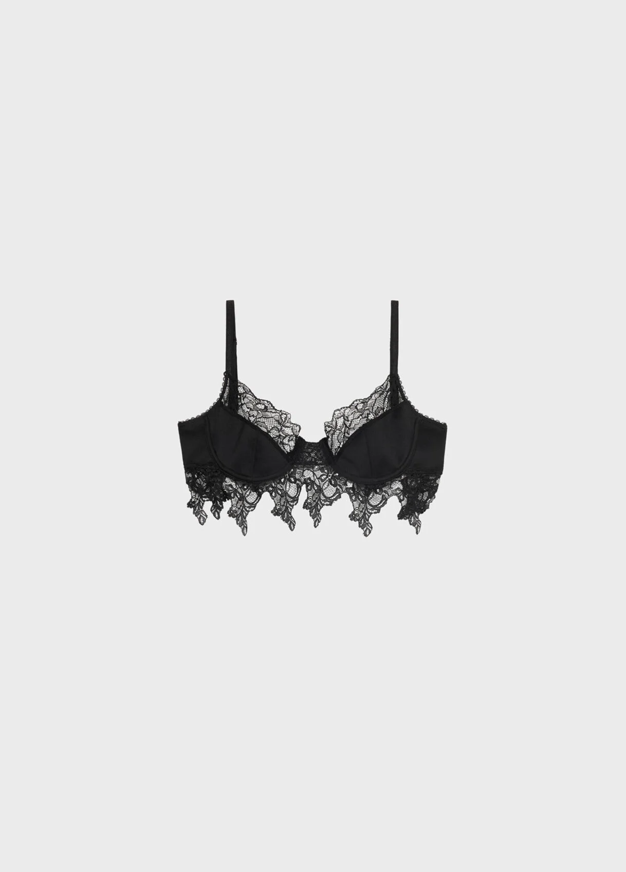 Tech neoprene top trimmed with scalloped lace. - Tech neoprene - Lace - V-neck - Underwired cups - Scalloped hem - Adjustable straps - Hook closure at back - Body-hugging fit - Made in Italy DETAILS To find the correct size for you, please consult the Size Guide. Composition: Main fabric: 85% polyester, 15% elastane; Trimmings: 80% polyamide, 20% elastane; Lace: 72% polyamide, 28% viscose; Lace 2: 81% polyamide, 19% ramie Wash delicate cycle max 30°C; Do not bleach; Do not tumble dry; Iron at low temperature - no steam; Dry clean with tetrachloroethylene or hydrocarbons - gentle cycle; Wash inside out; Iron inside out