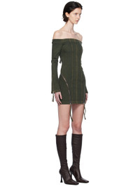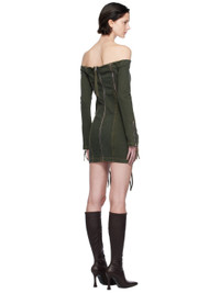 Stretch denim dress. Fading and zip vents throughout. · Off-the-shoulder construction · Straight neck · Zip closure at back · Contrast stitching in brown Supplier color: Midnight/Bronze