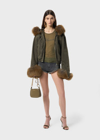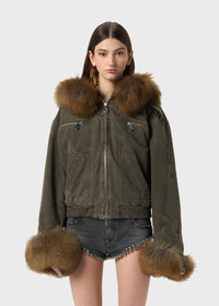 CANVAS BOMBER JACKET WITH FAUX FUR