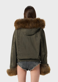 BOMBER JACKET IN COTTON CANVAS WITH HOOD AND CUFFS TRIMMED IN CASHMERE GOAT FUR, ZIPPERED POCKETS, SLANT POCKETS, AND ZIP CLOSURE. COMPOSITION: 100% CO - COTTON CANVAS - CASHMERE GOAT FUR - BOMBER JACKET STYLE - HOOD AND CUFFS TRIMMED IN FUR - TOGGLE FASTENERS AT THE SHOULDERS - ZIP POCKETS - SLANT POCKETS - ZIPPER CLOSURE - ELASTICATED HEM - REGULAR FIT DETAILS COLORS: GREEN