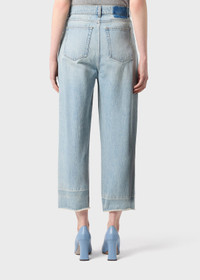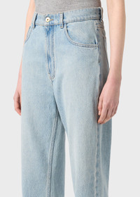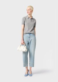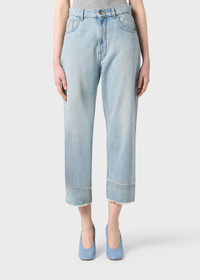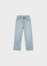 LIGHT-WASH DENIM CROPPED JEANS WITH B MONOGRAM EMBROIDERY ON THE POCKET AND RAW HEM. COMPOSITION: 100%CO - LIGHT-WASH DENIM - CROPPED STYLE - WIDE LEG - FIVE-POCKET STYLE - BELT LOOPS - ZIPPER AND BUTTON CLOSURE - B MONOGRAM EMBROIDERY AT THE POCKET - RAW CUT HEM - REGULAR FIT DETAILS COLORS: LIGHT BLUE