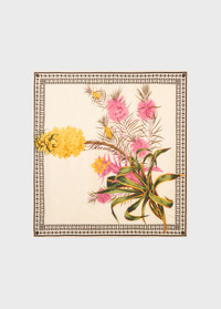 Viscose twill foulard with agave flower print and the Blumarine logo. - Viscose twill - Agave flower print - Blumarine logo - Made in Italy DETAILS Composition: External fabric: 100% Viscose Gentle wash at max 30°C; Do not bleach; Do not tumble dry; Iron at low temperature - without steam; Do not dry clean; Use a mild detergent; Gentle spin cycle; Wash in a mesh bag