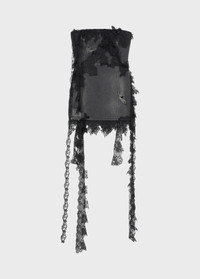 Minidress in distressed stone-washed denim with scalloped lace appliques that fall into ruffles at the hem. - Distressed stone-washed denim - Scalloped lace decorations - Sleeveless cut - Straight neckline - Ruffles at hem - Low-cut back - Zip closure at back - Mini length - Body-hugging fit DETAILS To find the correct size for you, please consult the Size Guide. Composition: Main fabric: 100% cotton; Lace: 75% polyamide, 25% ramie Wash delicate cycle max 30°C; Do not bleach; Do not tumble dry; Iron at low temperature - no steam; Do not dry clean; Hang dry in shade; Wash separately; Do not expose to direct heat; Wash inside out; Gentle spin; Iron inside out