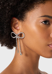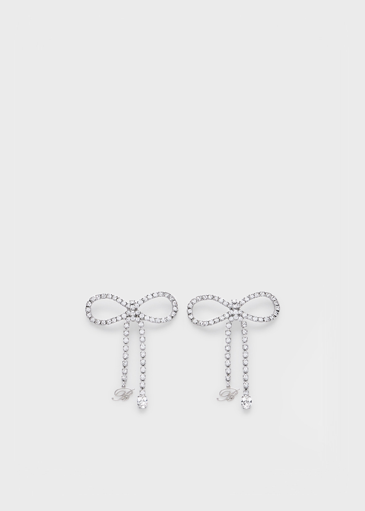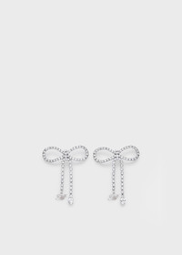 METAL BOW-SHAPED STUD EARRINGS ADORNED WITH RHINESTONES. ACETATE ACCESSORY 70% VE 30% OT - METAL AND GLASS RHINESTONES - PIERCED EARRING STYLE - BOW SHAPE - CLASP CLOSURE WITH PIN - BOW WIDTH: 5.5 CM, BOW HEIGHT: 2 CM, PENDANT WITH METAL B MONOGRAM DETAILS COLORS: SILVER