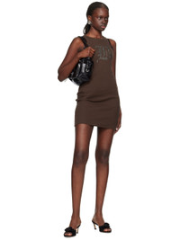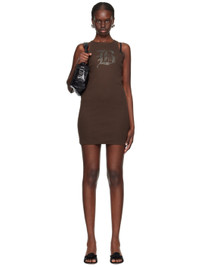 Stretch cotton ribbed jersey dress. · Rib knit crewneck and armscyes · Crystal-cut logo graphic at front Supplier color: Chocolate brown