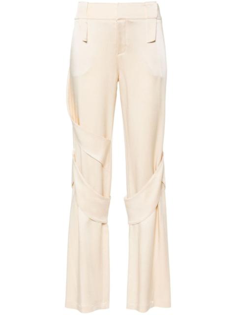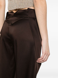 satin wide-leg cargo trousers Highlights - Chocolate brown - Satin weave - Mid-waist - Wide leg - Belt loops - Spiral inserts on the legs - Concealed front zip and press-stud fastening Made in Italy Composition Polyester 100%, Acetate 71%, Viscose 27%, Elastane 2% SIZE & FIT Model measurements Height 5 ft 11 in(1.8 m) Bust/Chest 31.49 in(80 cm) Hips 36.22 in(92 cm) Waist 25.59 in(65 cm) FittingInformation Designed for a straight-leg fit, these trousers allow for a close fit at the waist and an unrestricted, comfortable fit over the leg Made from a midweight stretch fabric, this piece offers elasticity and flexibility when worn This piece fits true to size – take your usual size Washing instructions Dry Clean Only