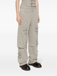 buckle-detail boyfriend jeans Imagined in a mushroom-grey hue, these boyfriend jeans by Blumarine have a layered design with circular cut-outs at the knee. Decorative buckle detailing lends a utilitarian feel. Highlights - Taupe grey - Stretch-cotton - High-waisted - Belt loops - Concealed fly and button fastening - Classic five pockets - Layered details - Cut-out detailing - Decorative buckle detail - Silver-tone hardware - Straight leg Imported Composition Cotton 98%, Elastane 2% SIZE & FIT Model measurements Height 5 ft 10 in(1.78 m) Bust/Chest 32.7 in(83 cm) Hips 34.3 in(87 cm) Waist 24.4 in(62 cm) FittingInformation Designed for a straight-leg fit, these jeans allow for a close fit at the waist and an unrestricted and comfortable fit over the leg Constructed from stretch denim, this piece offers a stretch fit with durability This piece fits true to size – take your usual size