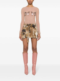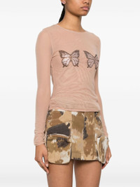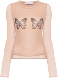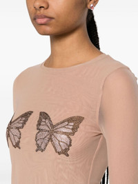 blush beige stretch-design tulle netting crew neck long sleeves crystal-embellished butterflies tulle lining straight hem Size & Fit Model Measurements: Bust: 81cm Height: 178cm Hips: 93cm Waist: 59cm