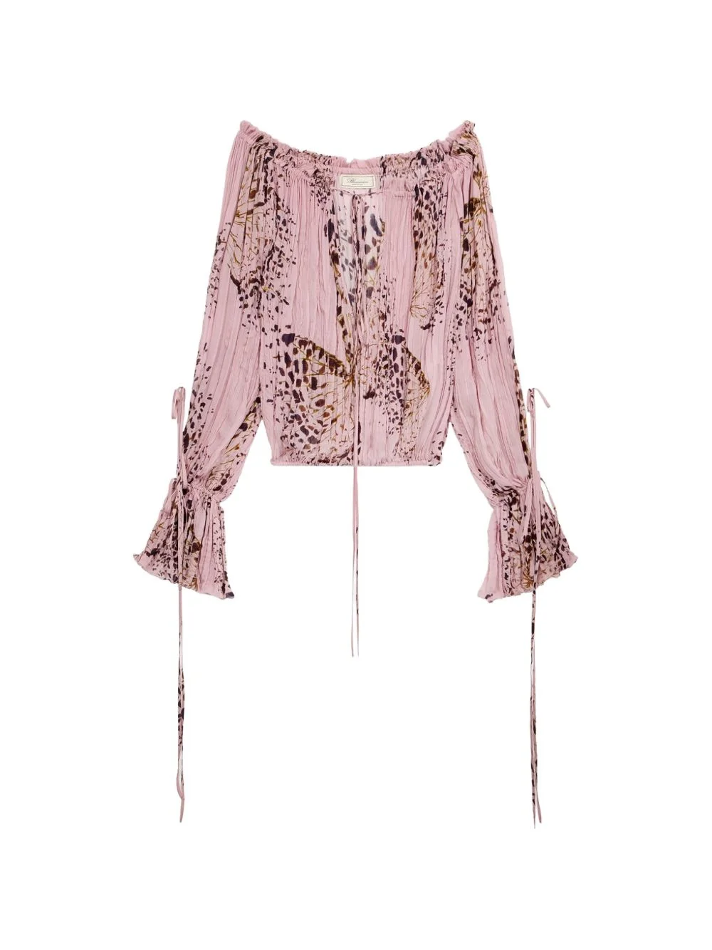 butterfly-print blouse Highlights - Pink - Butterfly print - Long sleeves - Tie fastening - Pleated Made in Italy Composition Viscose 100% Washing instructions Read Manufacturer Guidelines