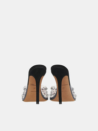BLUMARINE heels in black & transparent, PVC & leather construction, low-top, slip-on style, open back, transparent low vamp & rhinestone embellishment, pointed toe, stiletto heel, leather sole. Made in Italy PVC & Leather European Sizing