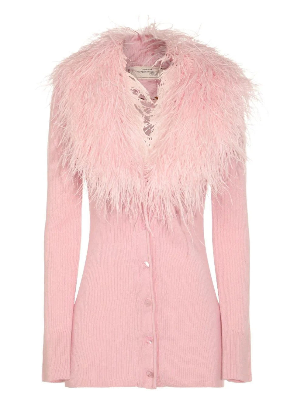 feather-trimmed cardigan Highlights - Pink - Placket button fastening - V-neck design - Long sleeves - Feather collar Made in Italy Composition Lining: Polyester 100% Outer: Feather 100%, Wool 100% Washing instructions Read Manufacturer Guidelines