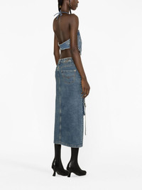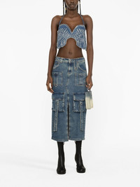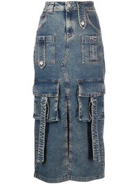 denim cargo skirt Blumarine pairs quality craftsmanship with contemporary design. This is highlighted on this denim skirt from the AW23 collection which has an updated take on a classic silhouette. Highlights - Blue - Stretch-cotton - Denim - Low-rise - Belt loops - Concealed fly and button fastening - Two front cargo pockets - Two front patch pockets - Classic five pockets - Front slit - Mid-length Imported Composition Cotton 98%, Spandex/Elastane 2% SIZE & FIT Model measurements Height 5 ft 10 in(1.79 m) Bust/Chest 31.1 in(79 cm) Hips 35 in(89 cm) Waist 24 in(61 cm) FittingInformation This midi-length skirt is intended to be worn low on the hips Constructed from stretch denim, this piece offers a stretch fit with durability This piece fits true to size – take your usual size