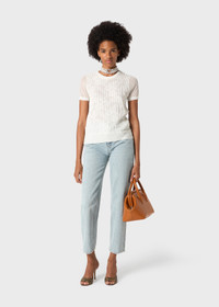 LIGHT-WASH DENIM CARROT FIT JEANS WITH LOGOED RIVET ON THE FRONT POCKET AND B MONOGRAM LABEL. COMPOSITION: 100% COTTON POCKET INTERIOR 65% COTTON 35% POLYESTER - LIGHT-WASH DENIM - FIVE-POCKET STYLE - B MONOGRAM ON THE RIVET - ZIPPER AND BUTTON CLOSURE - EMBROIDERY B MONOGRAM LABEL AT BACK - CARROT FIT - REGULAR FIT DETAILS COLORS: WHITE