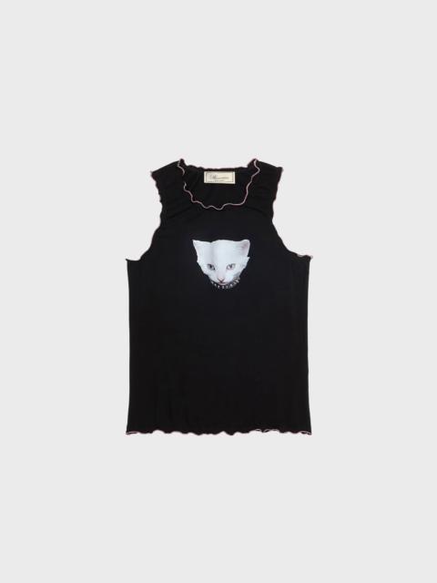 Stretch cotton jersey top with digital kitten print and contrast ruffle detail. - Stretch cotton jersey - Digital kitten print - Sleeveless cut - Contrast ruffle trim - Body-hugging fit - Made in Italy DETAILS To find the correct size for you, please consult the Size Guide. Composition: Main fabric: 95% cotton, 5% elastane; Trimmings: 75% polyamide, 25% elastane Wash delicate cycle max 30°C; Do not bleach; Do not tumble dry; Iron at low temperature - no steam; Do not dry clean; Wash separately; Wash inside out; Iron inside out