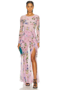 Details - Self: 100% Silk - Lining: 100% Polyester - Dry clean - Hidden side zipper closure - Sheer fabric - Attached train detail - Made in Italy - Our Style No. BMAF-WQ50 - Manufacturer Style No. A544G096A