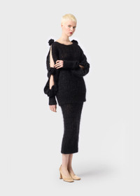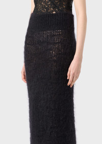 MIDI PENCIL SKIRT IN SOFT MOHAIR WITH WAISTBAND AND RIBBED HEM. COMPOSITION: 76%WM 12%WO 12%PA - MOHAIR - PENCIL STYLE - BAND AT THE WAIST AND RIBBED HEM - MIDI LENGTH - TAPERED FIT DETAILS COLORS: BLACK