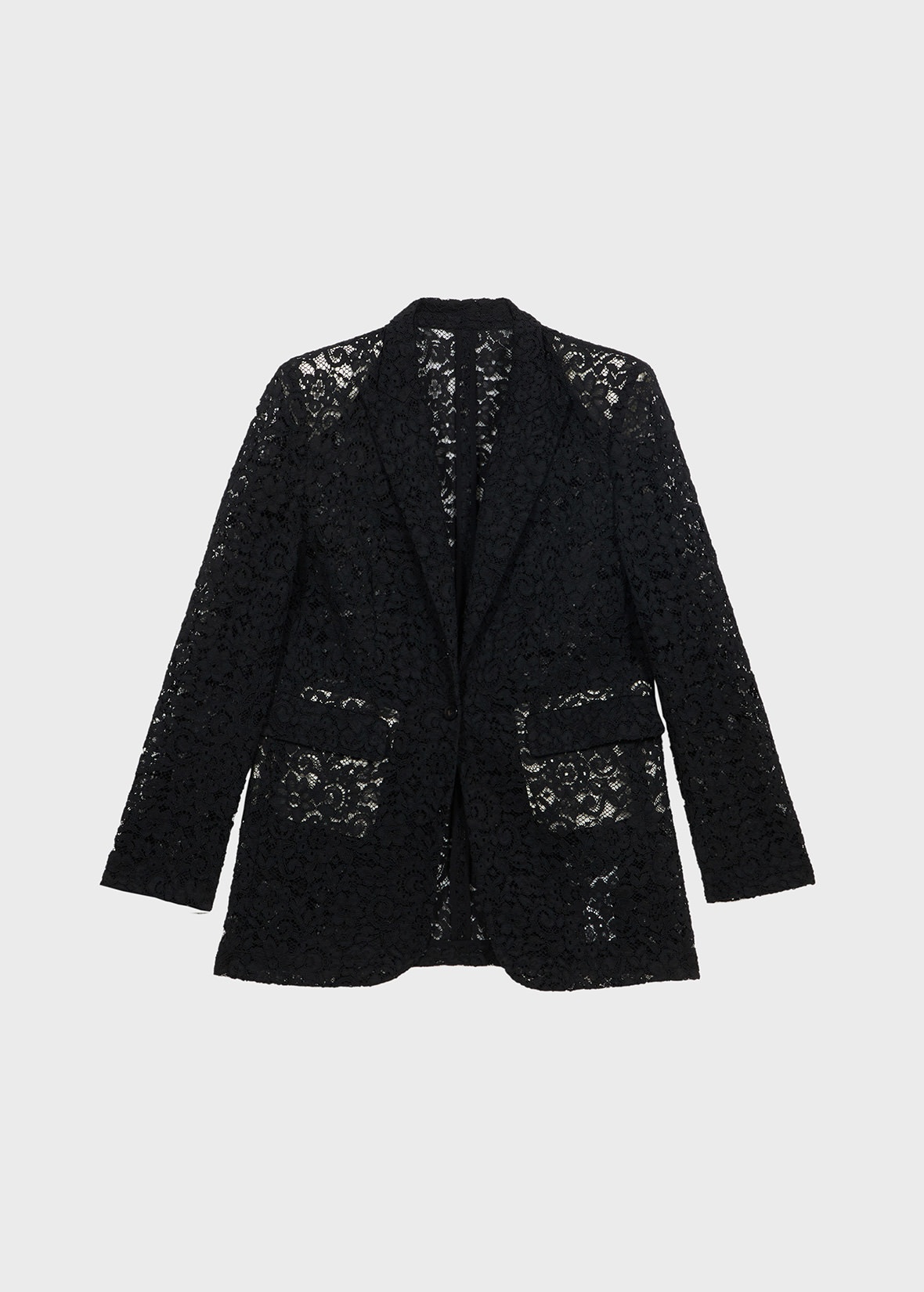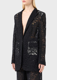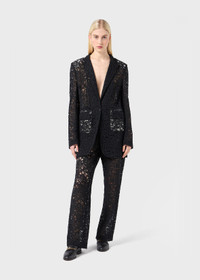 ELONGATED SILHOUETTE FOR THIS SINGLE-BREASTED JACKET IN REBRODE LACE WITH PEAKED LAPELS, SINGLE-BUTTON CLOSURE, AND CONTRASTING LINING. COMPOSITION: 60%CO 40%PA - COTTON BLEND REBRODE LACE - SINGLE-BREASTED STYLE - ELONGATED SILHOUETTE - CONTRAST LINING AT THE SHOULDER PADS AND POCKETS - PEAKED LAPELS - ONE-BUTTON CLOSURE - BUTTONED CUFFS - FLAP POCKETS - REGULAR FIT DETAILS COLORS: BLACK
