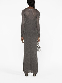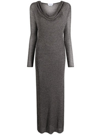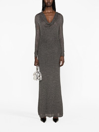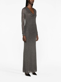 cowl-neck maxi dress Blumarine’s maxi dress is designed with a cowl neck that creates a languid draped effect. Its construction is enhanced with metallic threads. Highlights - Silver-tone - Stretch-design - Knitted construction - Draped detailing - Cowl neck - Long sleeves - Ankle-length - Straight hem Made in Italy Composition Outer: Viscose 83%, Polyester 17% Lining: Polyamide 83%, Spandex/Elastane 17% SIZE & FIT Model measurements Height 5 ft 11 in(1.8 m) Bust/Chest 34.25 in(87 cm) Hips 35.82 in(91 cm) Waist 24.8 in(63 cm) FittingInformation Designed for a slim fit that sits just away from the body offering a close yet comfortable fit The detachable slip sits just away from the body, offering a close yet comfortable fit Made from a midweight stretch fabric, this piece offers elasticity and flexibility when worn This piece fits true to size – take your usual size Washing instructions Dry Clean Only