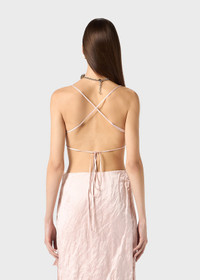 CRINKLED SATIN TOP WITH HANDMADE 3D ROSE. COMPOSITION: 53%VI 36%CO 11%ME - CRINKLED SATIN - HANDCRAFTED 3D ROSES WITH CROSSED STRAPS AT THE BACK - CLOSED WITH STRAPS TO TIE IN A BOW - FULLY LINED - SLIM FIT DETAILS COLORS: PINK