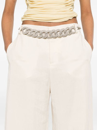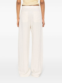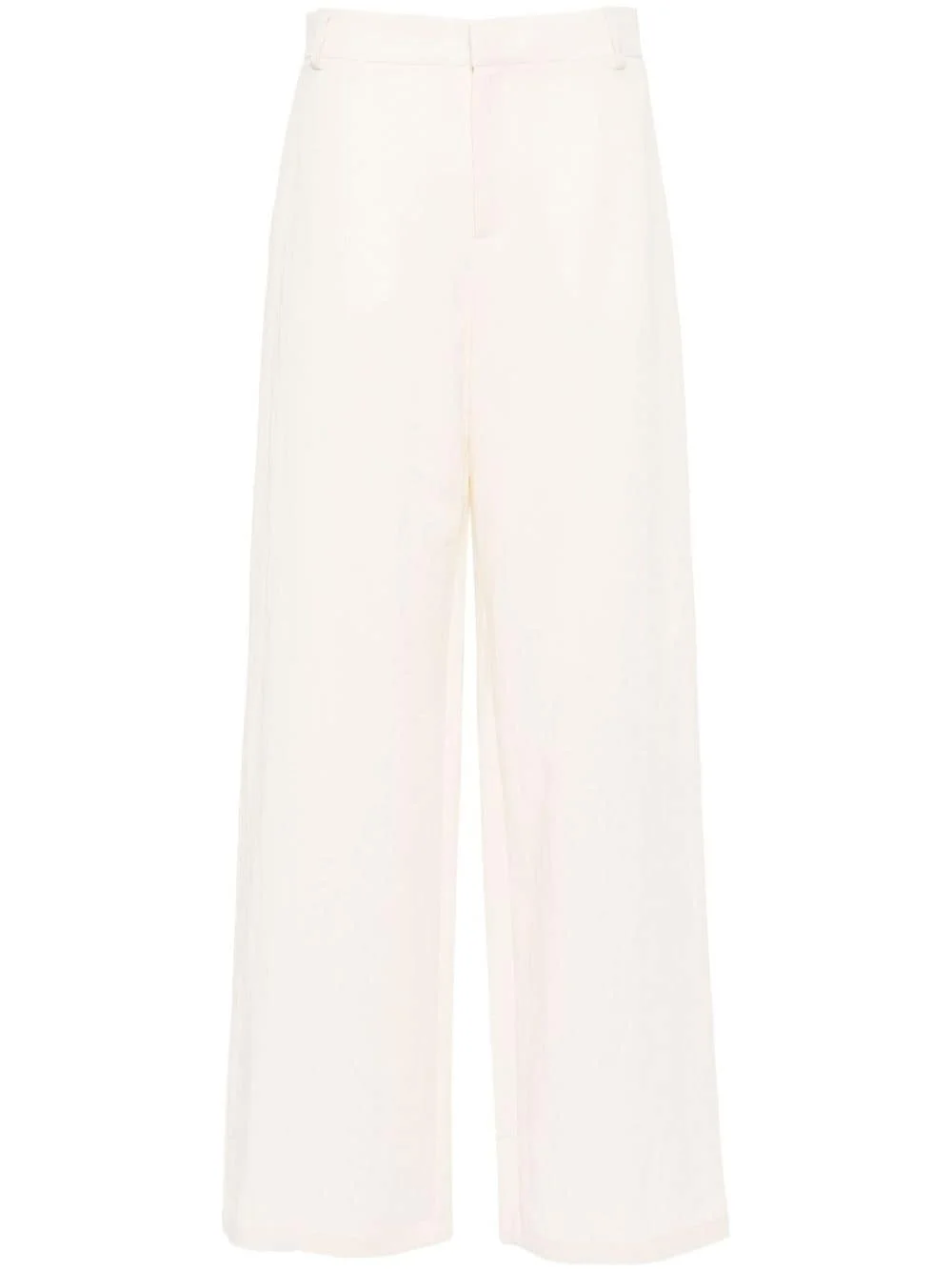 crinkled wide-leg trousers Highlights - Cream white - Crinkled finish - Wide leg - Belt loops - Two diagonal pockets to the sides - Two rear patch pockets - Concealed front button, hook and zip fastening Made in Italy Composition Viscose 93%, Polyamide 7% SIZE & FIT Model measurements Height 5 ft 10 in(1.77 m) Bust/Chest 33.07 in(84 cm) Hips 37 in(94 cm) Waist 24.8 in(63 cm) FittingInformation Designed with a wide-leg cut, these trousers allow for a close fit at the waist and offer a loose and roomy fit over the leg Made from a midweight non-stretch fabric This piece fits true to size – take your usual size
