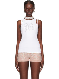 Stretch cotton ribbed jersey tank top. · Rib knit crewneck and armscyes · Crystal-cut logo graphic appliqués at front Supplier color: Ottico