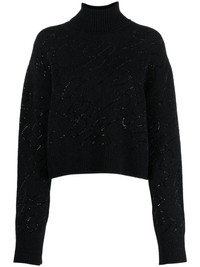 crystal-embellished knitted jumper Highlights - Black - Alpaca wool-wool blend - Knitted construction - Logo motif - Crystal embellishment - Roll neck - Long sleeves - Ribbed cuffs and hem Made in Italy Composition Alpaca Wool 52%, Polyamide 32%, Wool 13%, Elastane 3% SIZE & FIT Model measurements Height 5 ft 11 in(1.8 m) Bust/Chest 30.7 in(78 cm) Hips 35.03 in(89 cm) Waist 24.4 in(62 cm) FittingInformation Designed for a relaxed fit, this piece allows for comfort and movement when worn Cropped in length Made with a midweight knit, this piece offers some stretch This piece fits true to size – take your usual size Washing instructions Hand Wash