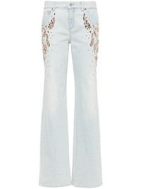 crystal-embellished straight-leg jeans Cut to a straight leg silhouette, these Blumarine jeans are animated with crystal embellishments. Highlights - Light blue/multicolour - Stretch-cotton - Denim - Washed - Crystal embellishment - Logo-engraved silver-tone hardware - Belt loops - Classic five pockets - Straight leg - Appliquã© logo at the rear - Decorative stitching - Distressed effect - Concealed fly and button fastening Imported Composition Polyester 100%, Cotton 98%, Spandex/Elastane 2% SIZE & FIT Model measurements Height 5 ft 9 in(1.76 m) Bust/Chest 32.28 in(82 cm) Hips 34.64 in(88 cm) Waist 23.62 in(60 cm) FittingInformation Designed for a straight-leg fit, these jeans allow for a close fit at the waist and an unrestricted and comfortable fit over the leg Constructed from stretch denim, this piece offers a stretch fit with durability This piece fits true to size – take your usual size