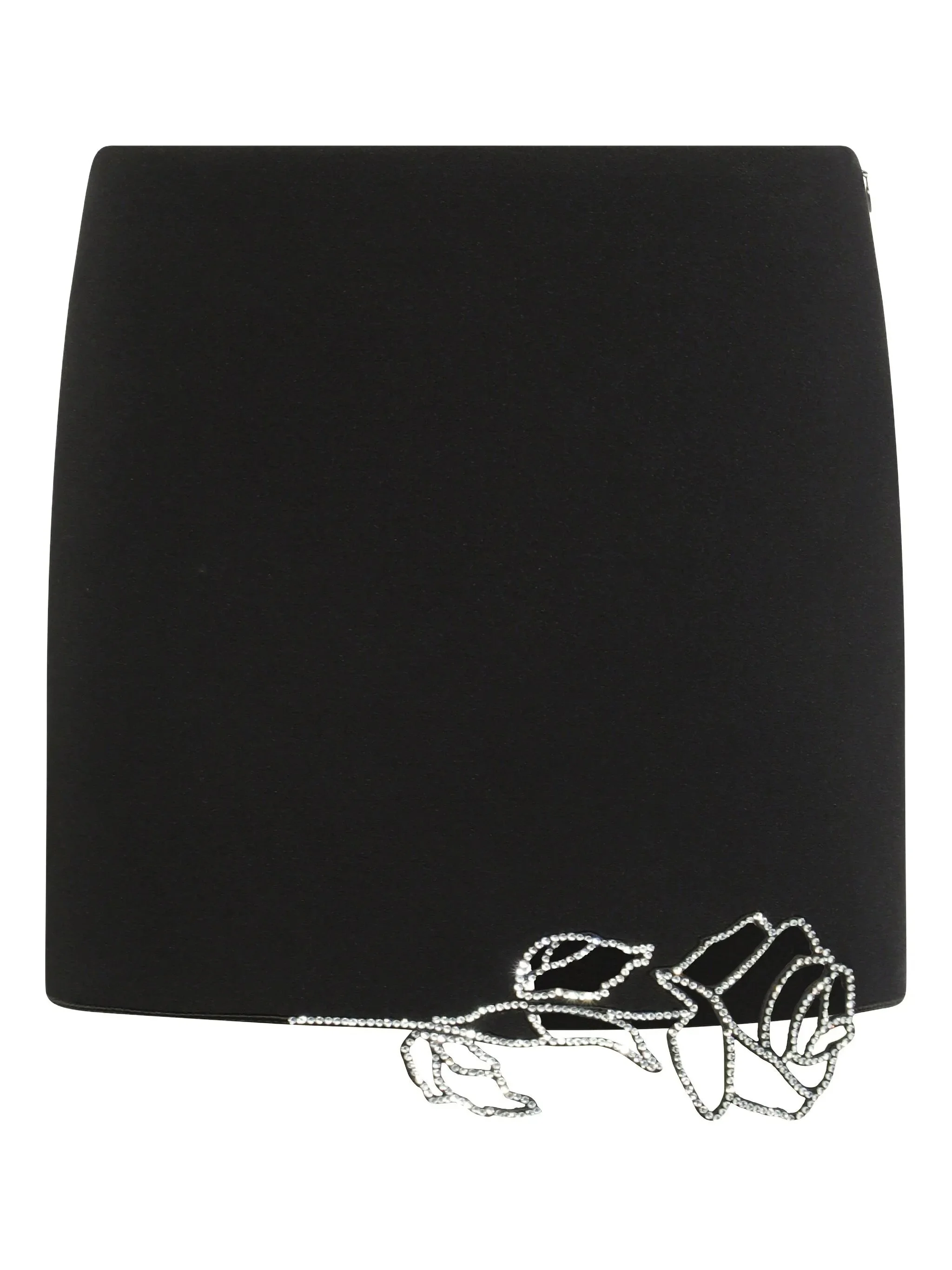 black mini length straight hem crystal embellishment rose motif side zip fastening - Color: BLACK - Made in: Italy - Designer Style ID: 2G248A N0990 Composition and care Outer Composition Polyester: 96.0%, Lining Composition Polyester: 100.0%, Outer Composition Spandex/elastane: 4.0%, Outer Composition Glass: 100.0%