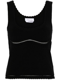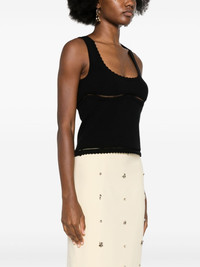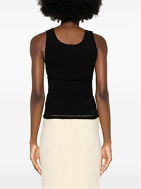 cut-out detailed tank top Highlights - Black - Fine knit - Scoop neck - Sleeveless - Cut-out detailing - Straight hem - Scallop edge Made in Italy Composition Viscose 70%, Polyester 30% SIZE & FIT Model measurements Height 5 ft 10 in(1.77 m) Bust/Chest 34.64 in(88 cm) Hips 35.43 in(90 cm) Waist 24.8 in(63 cm) FittingInformation Designed for a close fit throughout Made with a midweight knit, this piece offers some stretch This piece fits true to size – take your usual size