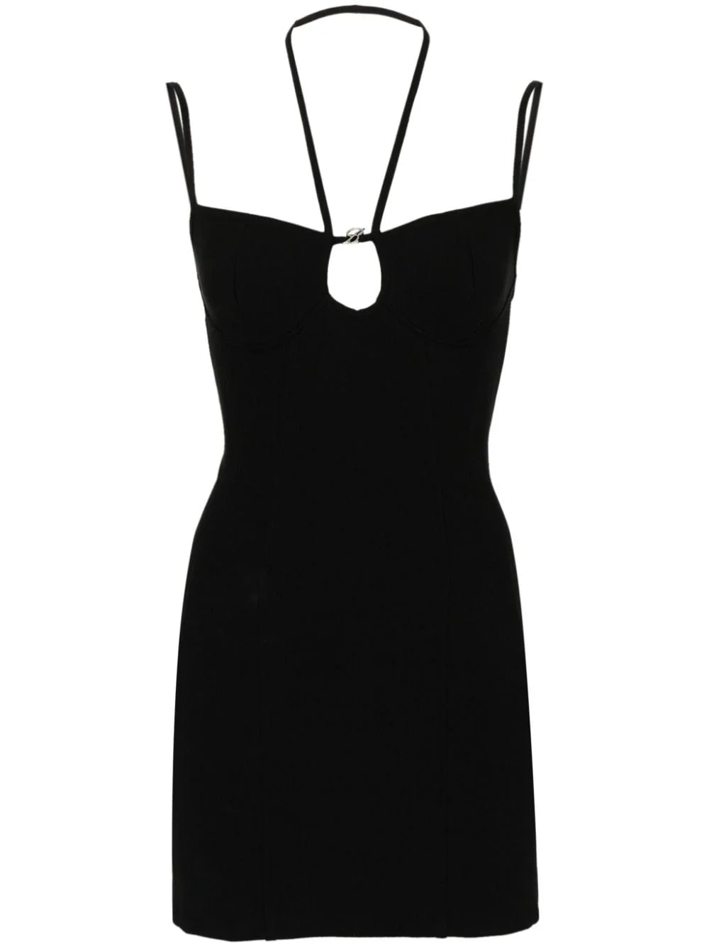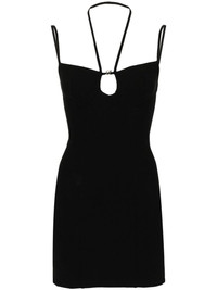 cut-out jersey mini dress Highlights - Jet black - Stretch-jersey - Halterneck - Spaghetti straps - Cut-out detailing - Monogram plaque at the chest - Seam detailing - Straight hem - Concealed rear zip fastening Made in Italy Composition Viscose 78%, Polyamide 16%, Elastane 6% SIZE & FIT Model measurements Height 5 ft 11 in(1.8 m) Bust/Chest 31.49 in(80 cm) Hips 36.22 in(92 cm) Waist 25.59 in(65 cm) FittingInformation Designed for a close fit throughout Made from a midweight stretch fabric, this piece offers elasticity and flexibility when worn This piece fits true to size – take your usual size Washing instructions Dry Clean Only