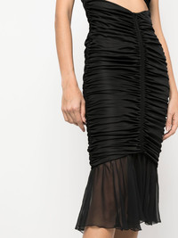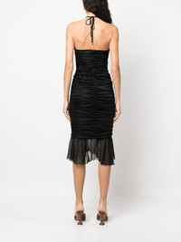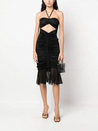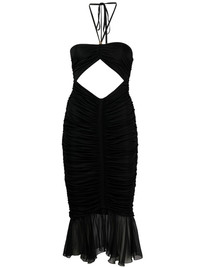 cut-out pleated midi dress black silk fully pleated ruffle hem cut-out detailing open back halterneck tie fastening strapless knee-length Made in Italy Composition Outer: Viscose 100%, Silk 100% Lining: Polyamide 73%, Elastane 27% SIZE & FIT Model measurements Height 5 ft 10 in(1.79 m) Bust/Chest 33.07 in(84 cm) Hips 35.82 in(91 cm) Waist 24.01 in(61 cm) Measurement CHEST 25.98 in(66 cm) HIPS 27.55 in(70 cm) WAIST 22.04 in(56 cm) FittingInformation This piece fits true to size. We recommend you get your regular size Cut for a close fit Made with a lightweight fabric Washing instructions Dry Clean Only