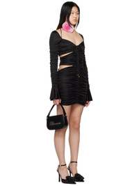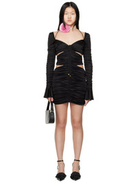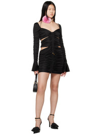 Viscose jersey dress. Ruching throughout. · Sweetheart neck · Self-tie halter strap · Cutouts at side seams · Flared cuffs · Zip closure at back · Fully lined Supplier color: Black