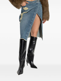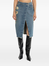 distressed slit-front denim skirt