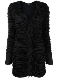 draped ruffled dress This mini dress from Blumarine is characterised by draped detailing throughout. Paired with charming ruffled trims, it adds a sense of movement to the long-sleeved design. Made in Italy Composition Outer: Viscose 100%, Silk 100% Lining: Polyamide 73%, Elastane 27% SIZE & FIT Model measurements Height 5 ft 10 in(1.77 m) Bust/Chest 31.49 in(80 cm) Hips 35.03 in(89 cm) Waist 23.22 in(59 cm) FittingInformation This piece fits true to size. We recommend you get your regular size Cut for a slim fit Made with a mid-weight fabric Measurement SLEEVE LENGTH 25 in(63.5 cm) HIPS 27 in(68.6 cm) LENGTH 31.49 in(80 cm) WAIST 22 in(55.9 cm) BUST 27.99 in(71.1 cm) Washing instructions Dry Clean Only