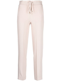 drawstring slim-fit trousers beige drawstring fastening waist two side slit pockets slim cut Made in Italy Composition Outer: Polyester 95%, Spandex/Elastane 5% Lining: Acetate 60%, Viscose 40% SIZE & FIT Model measurements Height 5 ft 10 in(1.79 m) Bust/Chest 31.88 in(81 cm) Hips 35.43 in(90 cm) Waist 23.62 in(60 cm) FittingInformation This piece fits true to size. We recommend you get your regular size Cut for a slim fit Made with a mid-weight stretch fabric Washing instructions Dry Clean Only