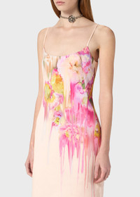 DRESS IN DUCHESSE WITH LIQUID FLOWER PRINT