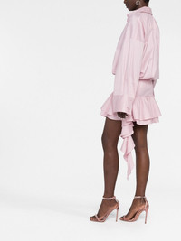 dropped-waist ruffled shirtdress Blumarine expertly combines movement and structure into this shirtdress. Presented in a delicate light pink hue, it features a softly tiered miniskirt with cascading ruffles that offset the structured shirt-style top half. Made in Italy Composition Cotton 100% SIZE & FIT Model measurements Height 5 ft 10 in(1.77 m) Bust/Chest 32.28 in(82 cm) Hips 35.03 in(89 cm) Waist 25.19 in(64 cm) FittingInformation This piece fits true to size. We recommend you get your regular size Designed for a loose fit at the bust and waist with a close fit on the hips Made with a mid-weight stretch fabric Washing instructions Machine Wash
