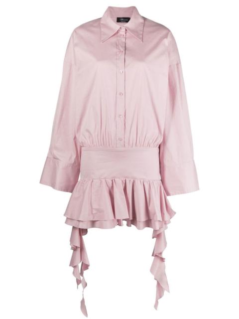 dropped-waist ruffled shirtdress Blumarine expertly combines movement and structure into this shirtdress. Presented in crisp white cotton-blend, it features a softly tiered miniskirt with cascading ruffles that offset the structured shirt-style top half. Made in Italy Composition Outer: Cotton 77%, Polyamide 18%, Spandex/Elastane 5% Lining: Cotton 77%, Polyamide 18%, Spandex/Elastane 5% SIZE & FIT Model measurements Height 5 ft 10 in(1.79 m) Bust/Chest 31.1 in(79 cm) Hips 35.03 in(89 cm) Waist 24.01 in(61 cm) Measurement CHEST 44.48 in(113 cm) HIPS 33.07 in(84 cm) LENGTH 34.25 in(87 cm) WAIST 44.48 in(113 cm) FittingInformation This piece fits true to size. We recommend you get your regular size Cut for a loose fit Made with a mid-weight stretch fabric