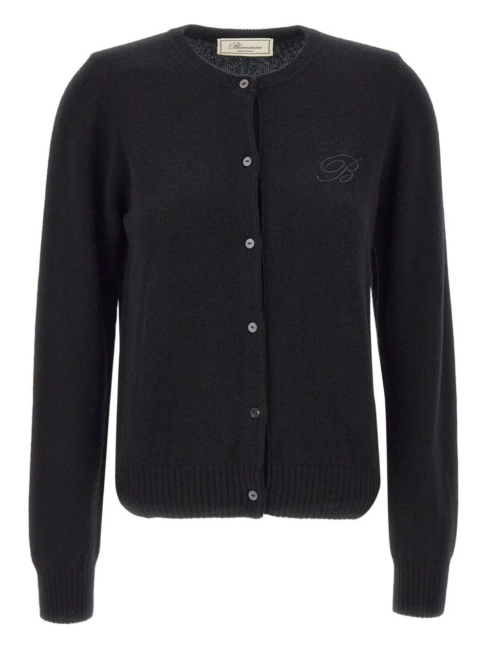 embroidered logo button cardigan Highlights - Black - Cashmere - Button fastening - Ribbed edges - Embroidered logo - Round neck Made in Italy Composition Cashmere 100%