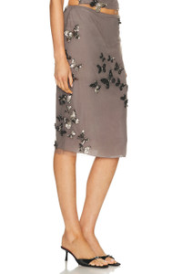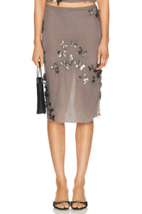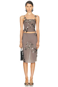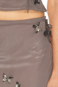 Details - Self: 100% polyamide - Lining: 100% viscose - Embroidery: 60% Polyvinylchloride, 30% glass, 5% polyamide, 5% polyester - Made in Italy - Do not wash - Fully lined - Hidden side zipper closure - Satin textile with mesh overlay - Sequin ebroidered appliques - Item not sold as set - Our Style No. BMAF-WQ34 - Manufacturer Style No. P444G031A
