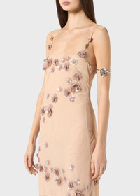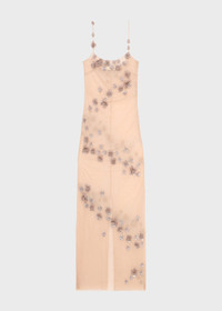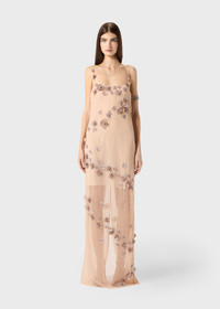 LONG TULLE DRESS WITH STRAPS AND HAND-EMBROIDERED RAMAGE PATTERN. COMPOSITION: 100%PA - TULLE - HAND-MADE FLORAL RAMAGE EMBROIDERY - SLIP-STYLE LINE - SHOULDER PADS - ROUND NECKLINE AT BACK AND FRONT - REMOVABLE SLIP - FLOOR-LENGTH - REGULAR FIT DETAILS COLORS: PINK