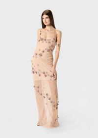 TULLE LONG DRESS WITH HAND EMBROIDERY