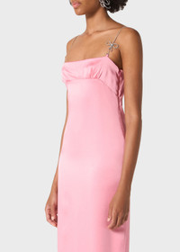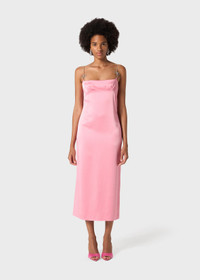 GLASS RHINESTONE JEWEL STRAPS WITH BOWS FOR THIS SHINY SATIN MIDI DRESS, FEATURING A STRAIGHT NECKLINE AND RUFFLED DETAILING UNDER THE BUST. COMPOSITION: 71% ACETATE 27% VISCOSE 2% ELASTANE LINING: 100% POLYESTER - SHINY SATIN - RHINESTONE STRAPS WITH BOWS - STRAIGHT NECKLINE AT FRONT AND BACK - RUFFLED DETAILING UNDER THE BUST - BACK VENT - ZIP CLOSURE AT SIDE - FULLY LINED - MIDI-LENGTH - REGULAR FIT DETAILS COLORS: PINK